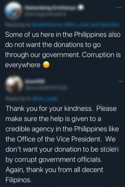 Rakan-rakan Filipina juga merasakan perkara yang sama , “Jangan percaya kerajaan”.