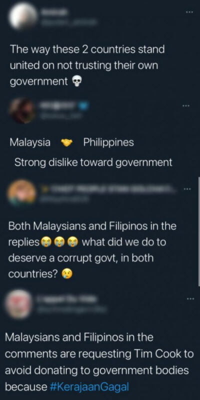 Pengumuman besar itu sampai kepada penonton Malaysia, dan rakyat merayu Tim Cook untuk tidak menghantar sumbangan dan bantuan melalui kerajaan .