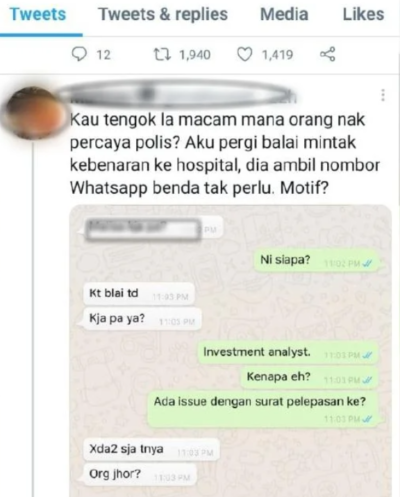 Ketua Polis Daerah Wangsa Maju Superintendan Ashari Abu Samah berkata, pihaknya mengesan satu hantaran yang tular di Twitter, hari ini, mengenai seorang wanita yang mendakwa dirinya dihubungi oleh anggota polis melalui aplikasi WhatsApp.