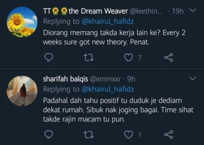 Video yang bermula di TikTok itu tular di Twitter apabila pemilik video berkenaan memberi tips agar mereka yang positif Covid-19 pergi berjoging jika mahu status jadi negatif dengan cepat.
