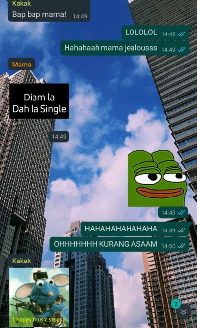 Setelah si ayah telah membuat penjelasan tentang ‘Yang’ itu, tiba masa anak-anak pula cuba menyakat ibunya. Perbualan dalam Whatsapp tersebut menjadi hiburan dan ramai yang terhibur dengan gelagat ibunya.