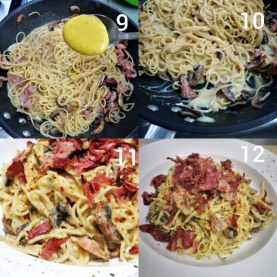 Elemen penting dalam membuat carbonara ni adalah konsistensi dan masa yang pantas.