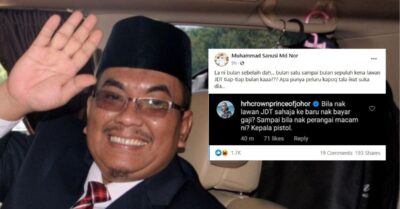 Bagitupun, lewat malam tadi, kenyataan pedas TMJ itu dibalas semula oleh Presiden pasukan yang juga merupakan Menteri Besar Kedah ketika ini, Sanusi dengan berkata, “La ni bulan sebelaih [11] dah. Bulan satu sampai bulan sepuluh kena lawan JDT tiap-tiap bulan kaaa??? Apa punya peluru kapoq tala ikut suka dia.”
