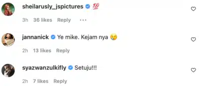 Di ruangan komen, rata-rata rakan artis seperti Sharnaaz Ahmad, Janna Nick, Sheila Rusly dan Catriona Brian Ross bersetuju dengan posting Michael Ang.