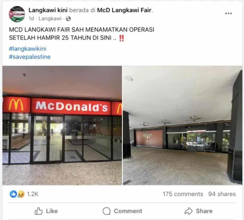 McDonald’s Langkawi dihentikan sepenuhnya setelah 25 tahun gara-gara boikot