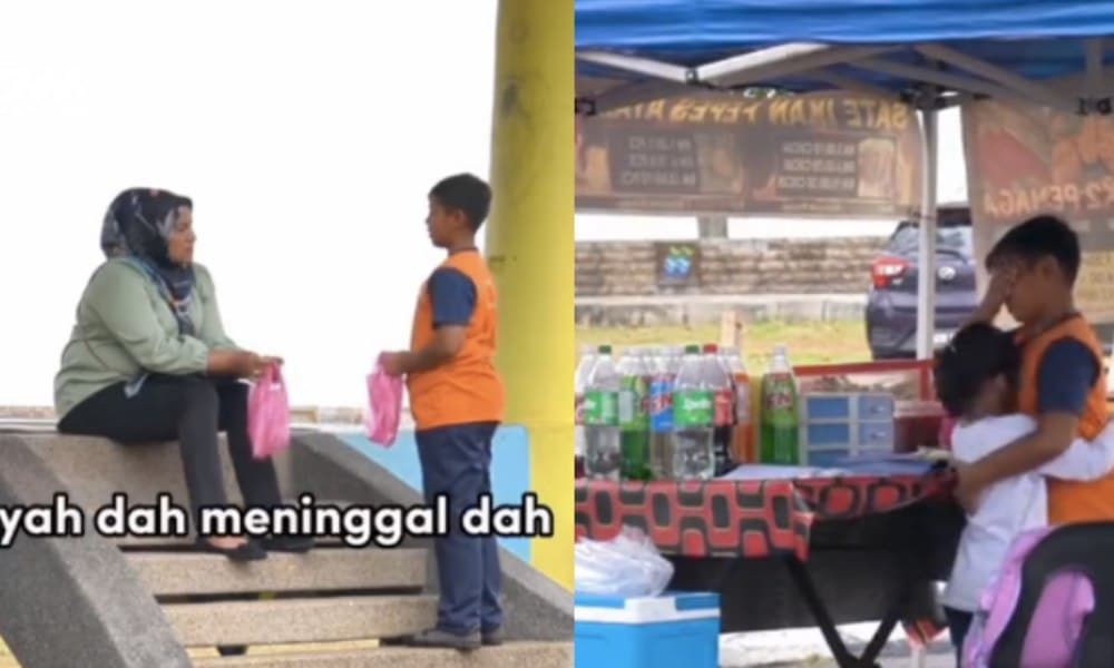 Budak lelaki dan adik cari rezeki, gigih jual sate ikan buat netizen sebak