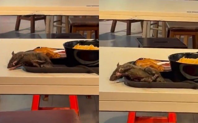 Loya tekak! Baru nak makan sekali tikus sebesar lengan jatuh atas dulang makanan
