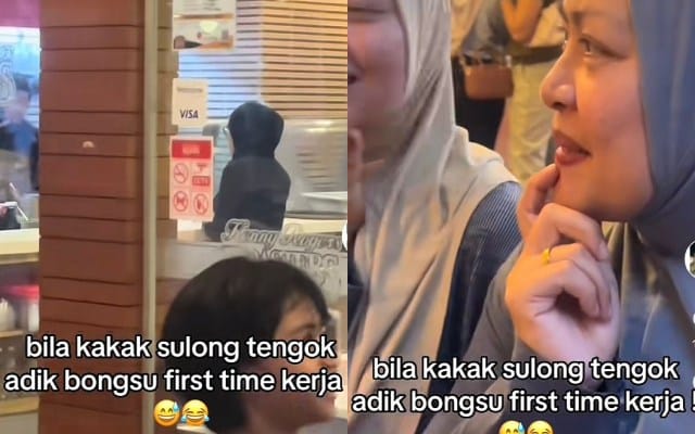 Comel je! Adik bongsu baru kali pertama bekerja, kakak sampai menangis jenguk adik dari jauh tengah kerja