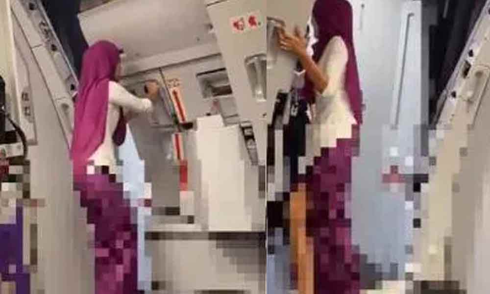 Tular video pramugari bertudung tapi kain terbelah sampai pangkal peha