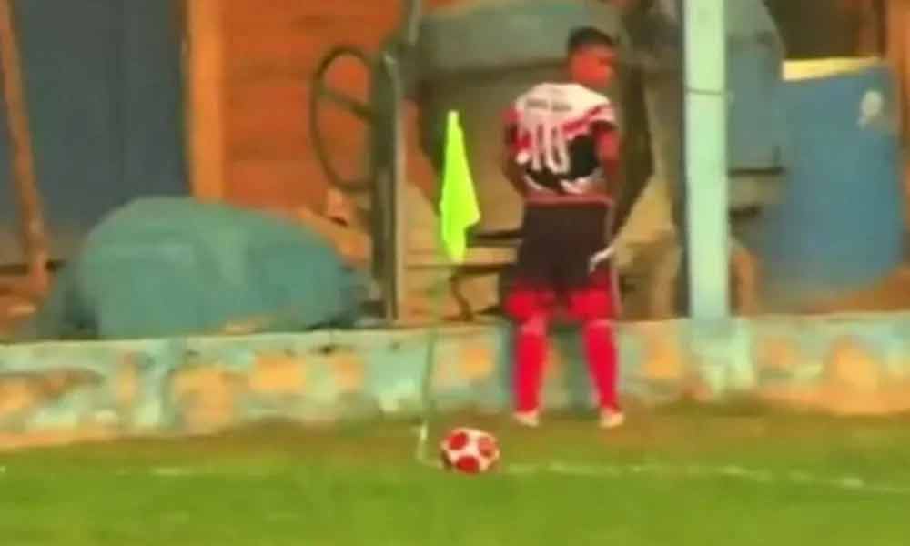 Tak tahan sangat, pemain profesional kencing atas padang bola sepak