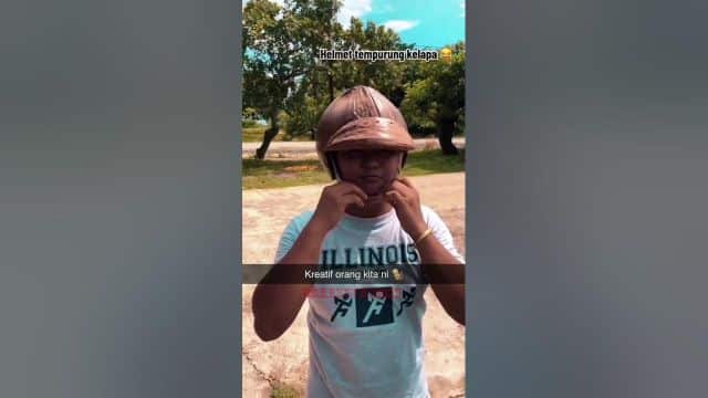 Kreatif pakcik ni-Helmet tempung kelapa guna dalam kampung pun polis tak perasan