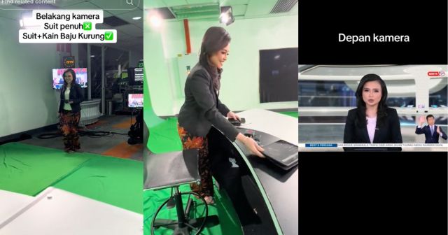 Tengok bahagian atas kemas, tengok bawah siap kain batik-Pembaca berita tunjuk pakaian di sebalik tabir