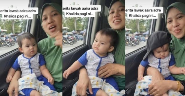 Letak topi atas kepala anak ini terus diam-Wanita ini senang tenangkan anak