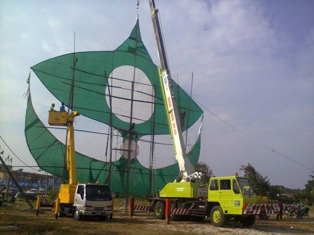 Tak sampai 5 minit wau bulan gergasi milik Pas megah berdiri akhirnya tersungkur lalu menyembah bumi