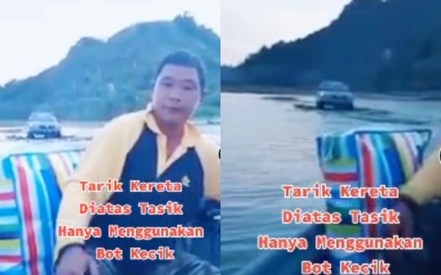Kecoh satu taman tengok Proton Saga bergerak terapung atas air