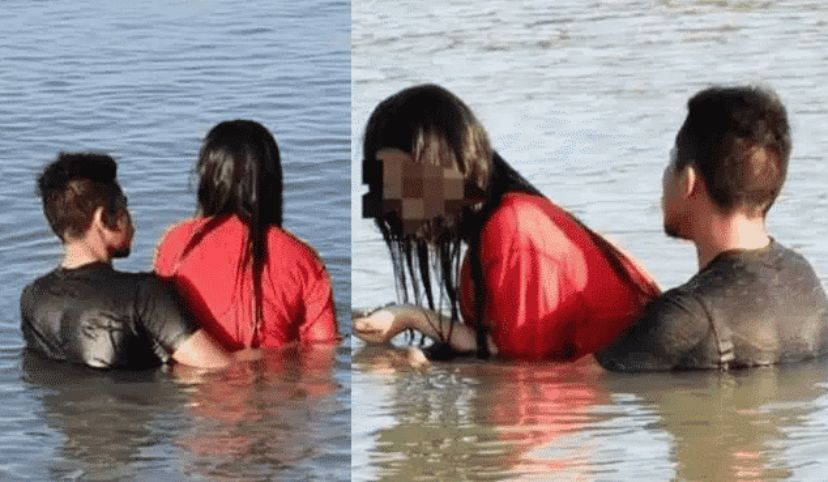 Pasangan kantoi lepas nafsu dalam laut, terkejut bila kena sergah orang ramai