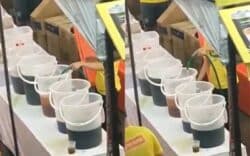 Kembang tekak lihat peniaga guna air paip bancuh air, paip siap jatuh atas tanah lagi