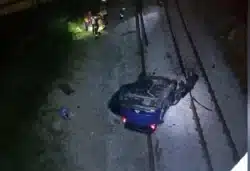 Pemandu cedera kenderaan terjatuh ke landasan kereta api sedalam 9 meter