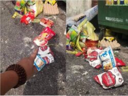 Bakul Makanan yang disumbang YB akhirnya dihumban ke tong sampah
