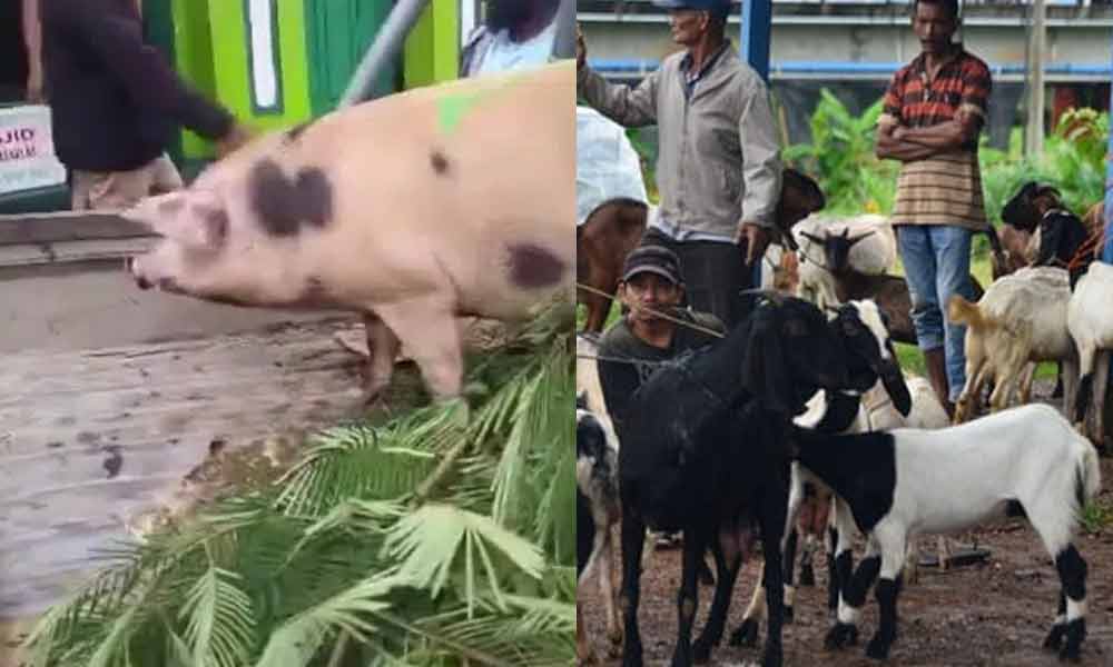 Terkejut tengok babi gemuk dibawa ke masjid, niat untuk buat ibadah korban dipuji