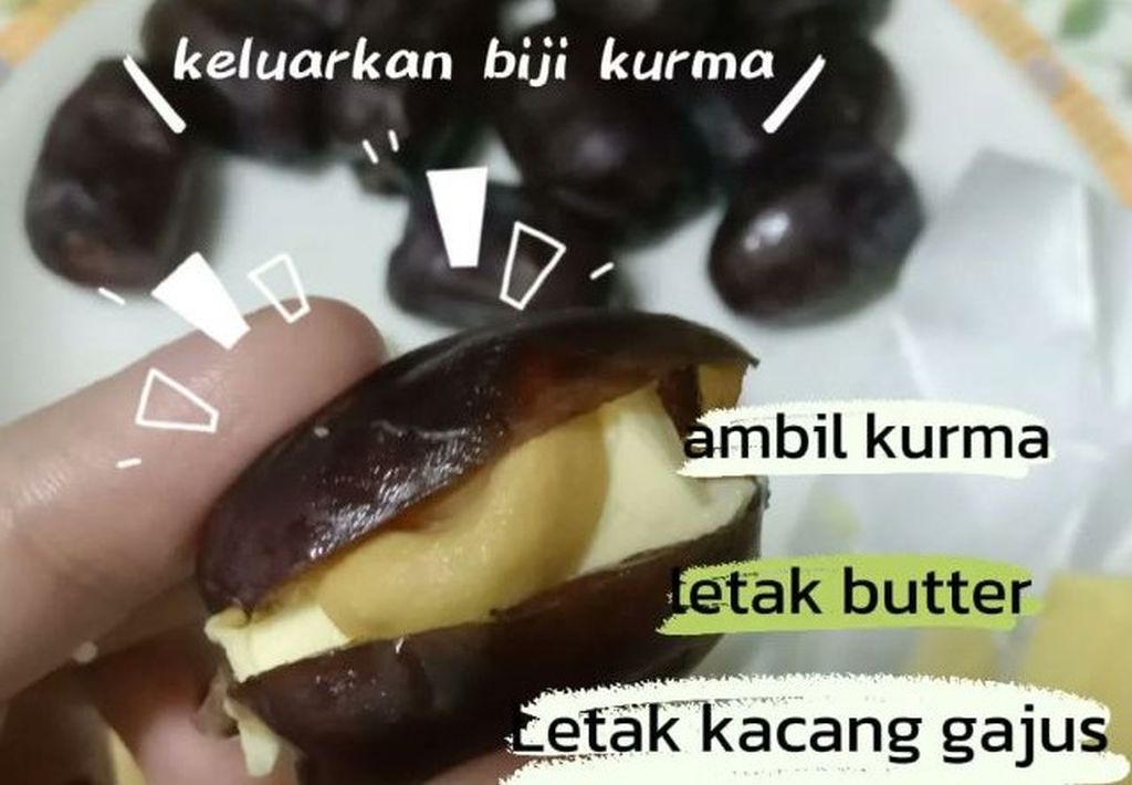 Letak kurma dengan mentega ni memang sedap, tapi awas ada orang tak boleh makan