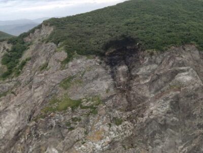 Sputnik melaporkan bangkai pesawat dijumpai di tebing sepanjang perairan di Palana, usaha mencari dan menyelamat tergendala berikutan masalah cuaca.